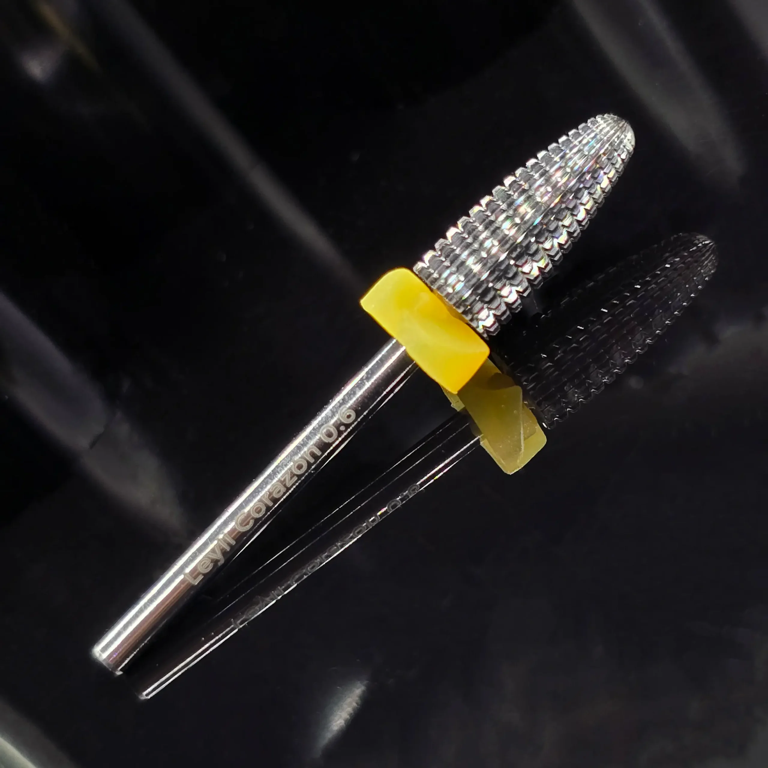 Broca de acero inoxidable en forma semi conica con cuchillas altamente definidas y cortes rectos ideal para diestros y zurdos. Su forma semi conica es ideal para realizar un retiro rapido y seguro. Abrasivo fino recomendado para retiro de esmalte semi permanente