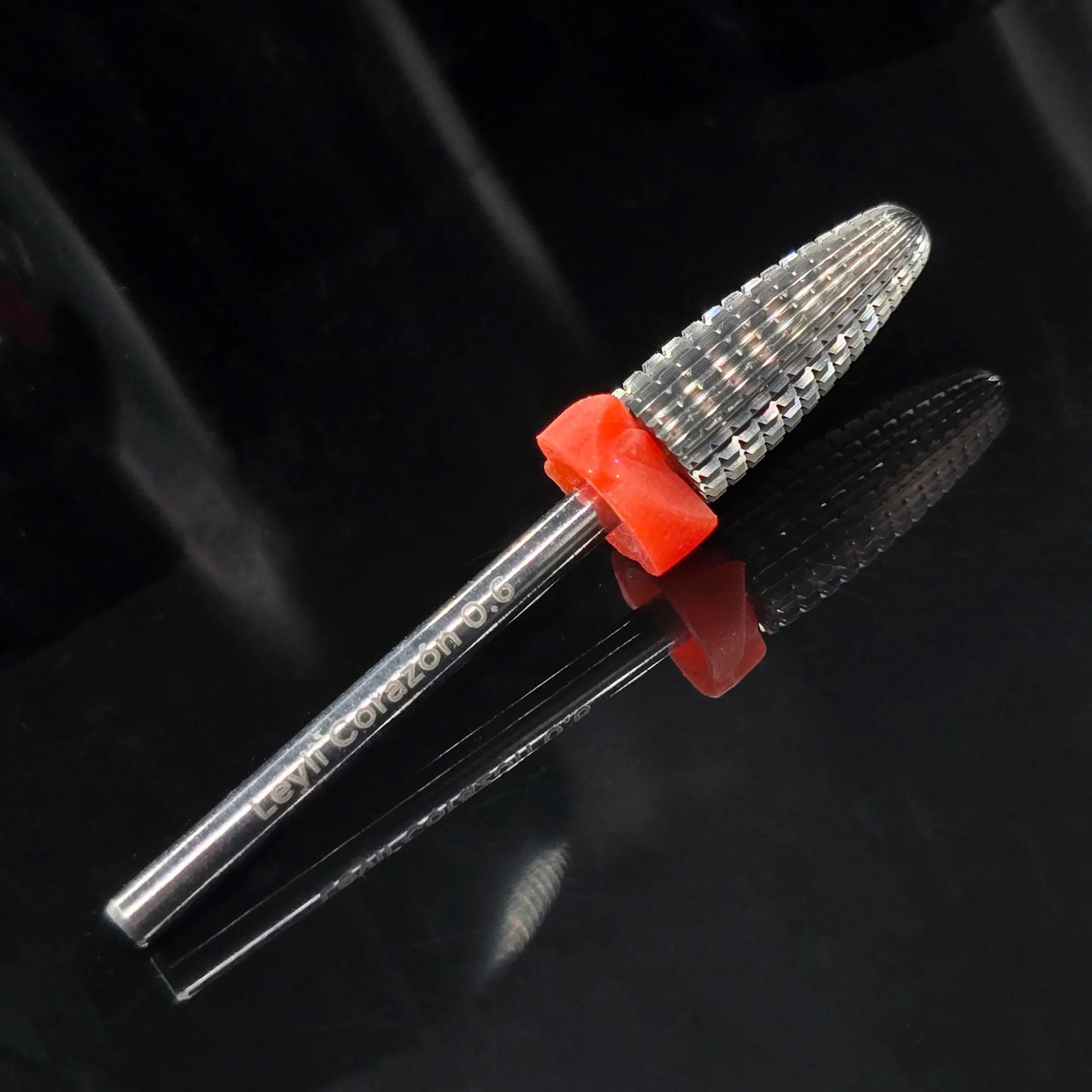 Broca de acero inoxidable en forma semi conica con cuchillas altamente definidas y cortes rectos ideal para diestros y zurdos. Su forma semi conica es ideal para realizar un retiro rapido y seguro. Abrasivo medio recomendado para retiro de builder gel.