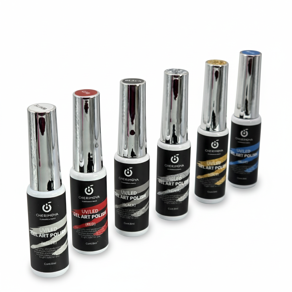 Kit Gel, incluye geles de colores intensos, ideales para crear diseños de nail art detallados y profesionales con acabado brillante.
