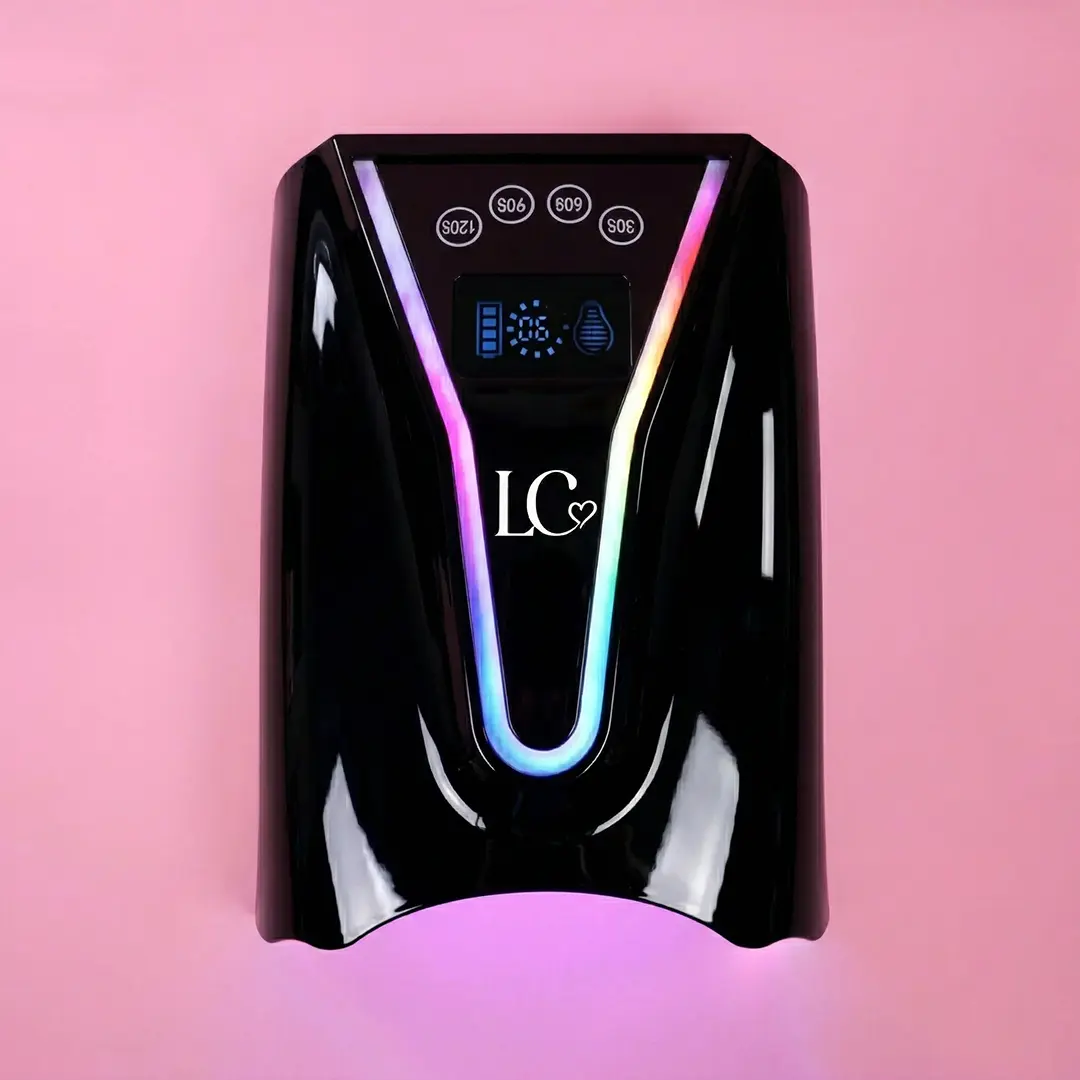 lampara cosmica con bateria de 5200 mah con proteccion para descarga y sobre carga(durabilidad de 4 a 6 servicios) con 45 focos blancos que emiten luz uv led para fotopolimerzar todos los geles para uñas, cavina blanca y base espejo, pantalla hd , temporizador de 30, 60, 90, 120s low con intensidad de menor a mayor . longitud de hondas de 365 a 405 nanometros .12 meses de garantia.