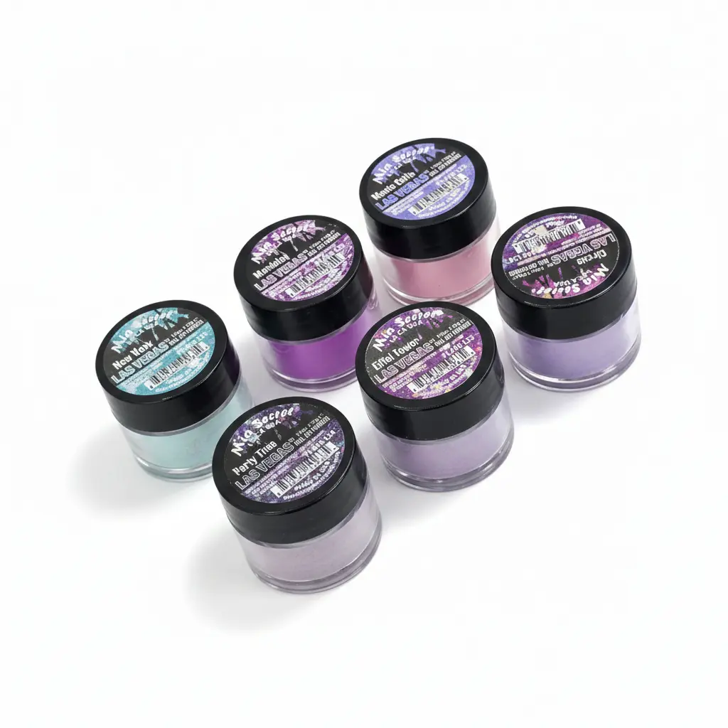 set de seis acrilicos o geles con tonos vibrantes y llamativos inspirados en la energía de Las Vegas.