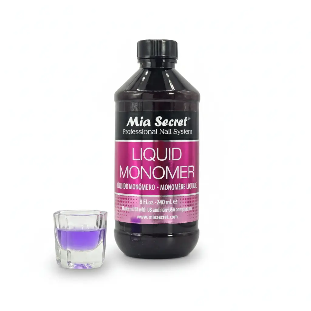líquido utilizado en la técnica de uñas acrílicas para mezclar con polvo acrílico y formar la pasta necesaria para esculpir las uñas.