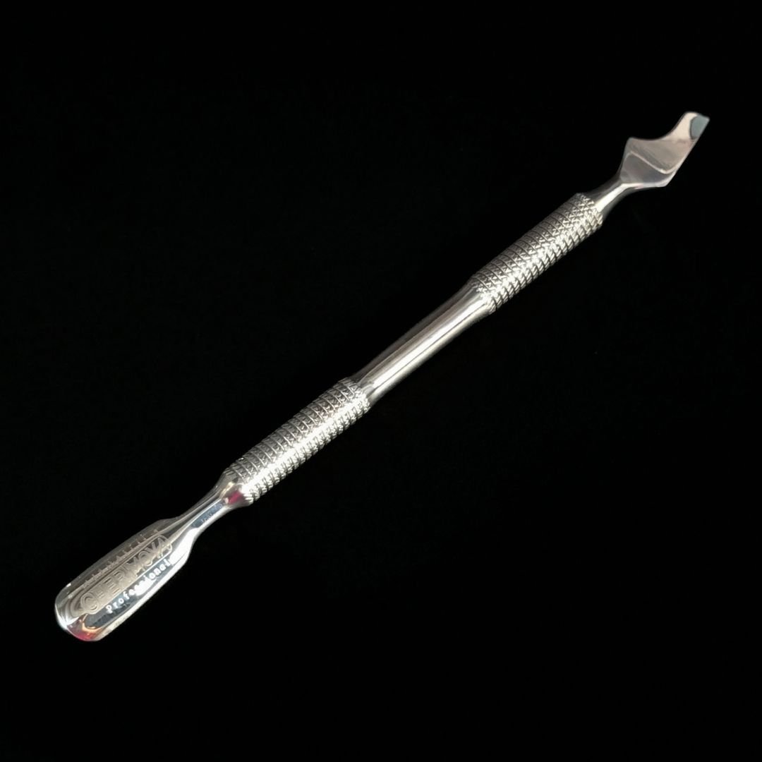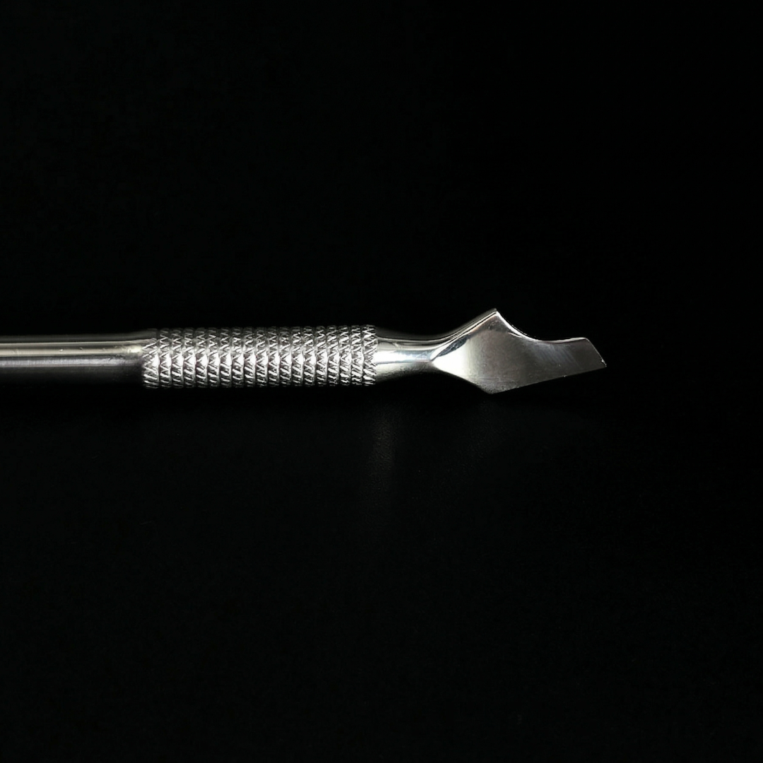 Herramienta profesional diseñada para empujar cutículas y preparar las uñas de los pies con precisión y seguridad.
